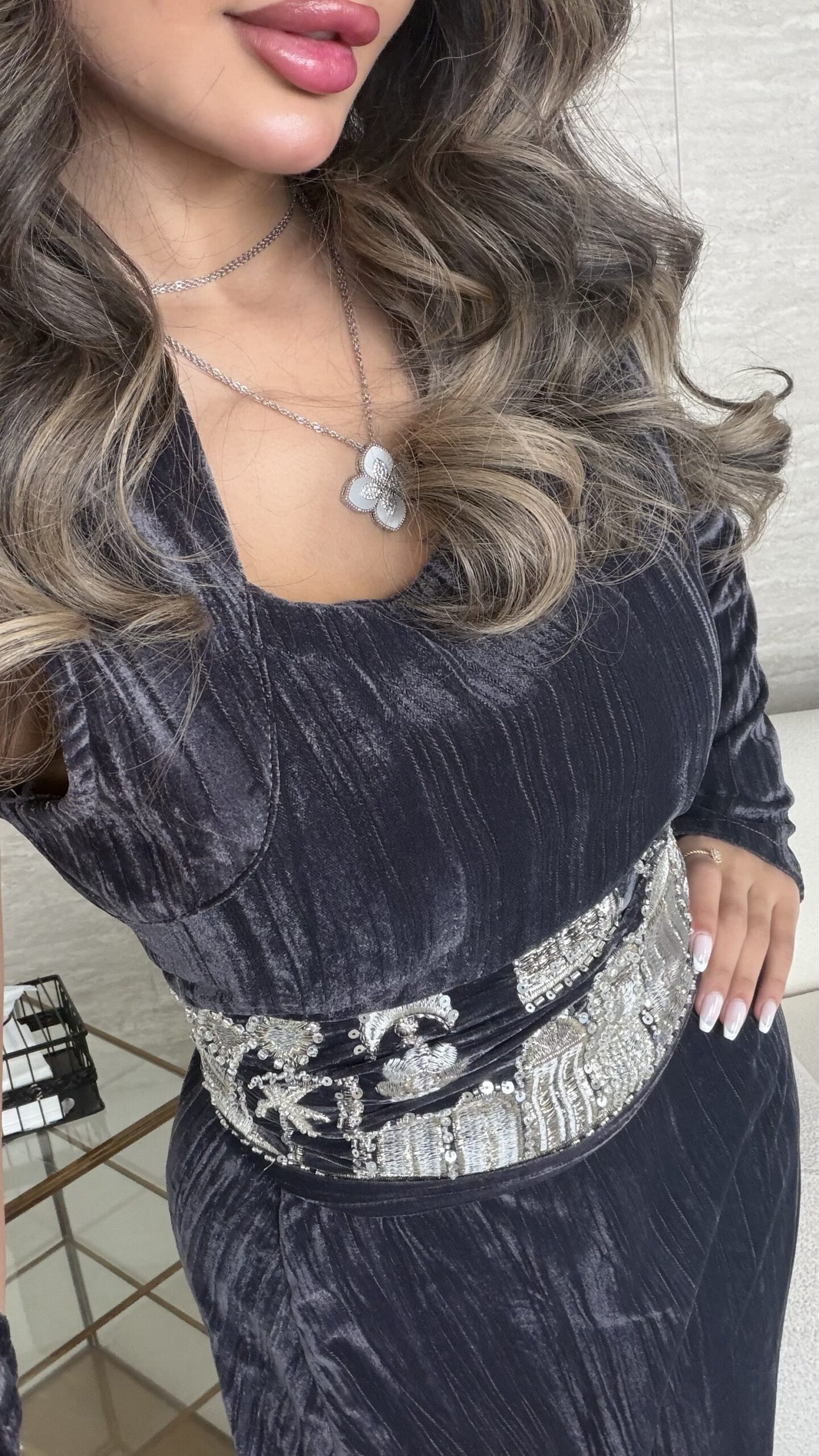 دراعة مخمل سمبل ومعاها حزام مشكوك واكمام